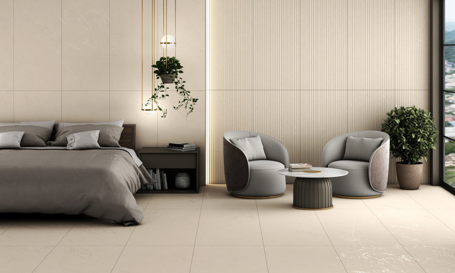 Beige ceramic tile with a polished finish, ideal for walls and floors.