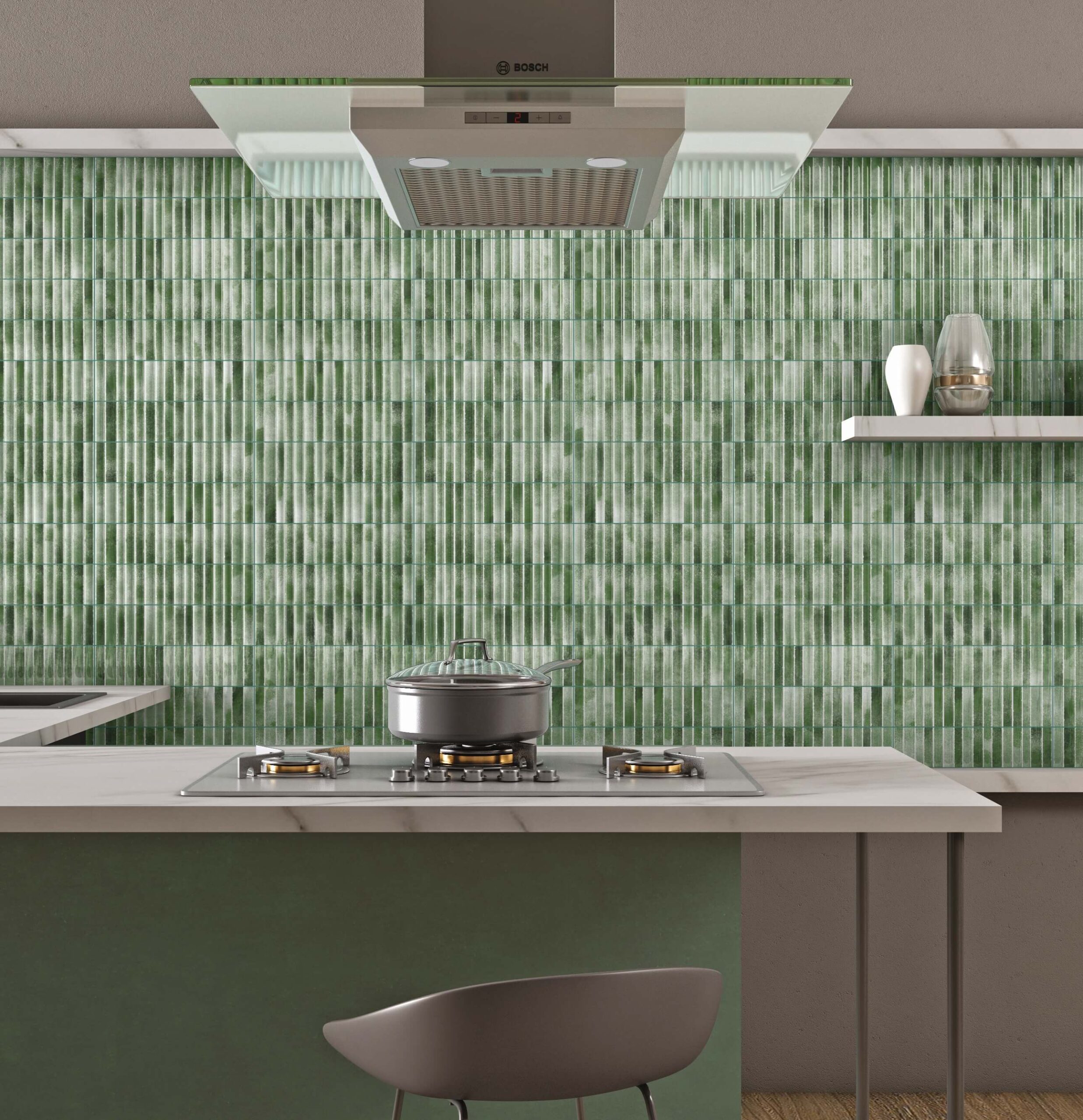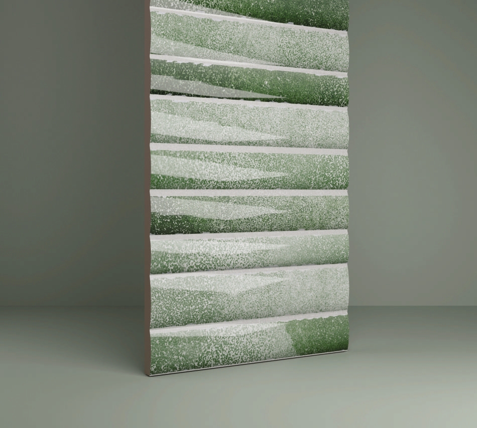 A fresh leafy green shade inspired by natural foliage and organic textures. The linear fluted design highlights its movement, giving the surface a calm yet dynamic presence.