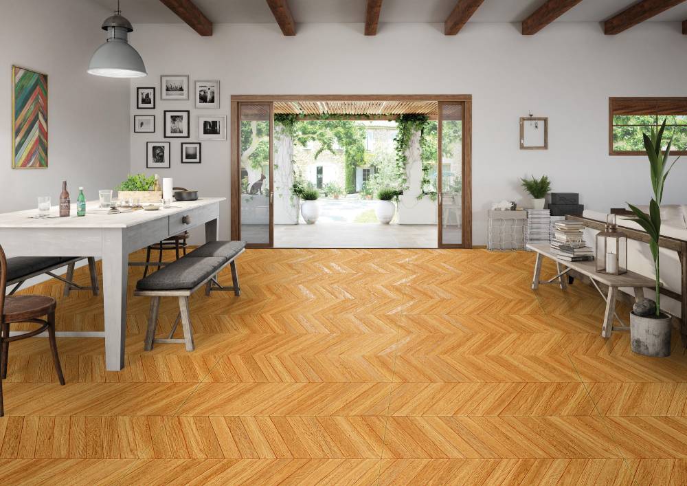 Luxurious gold-toned oak wood finish, perfect for creating sophisticated, high-end spaces.