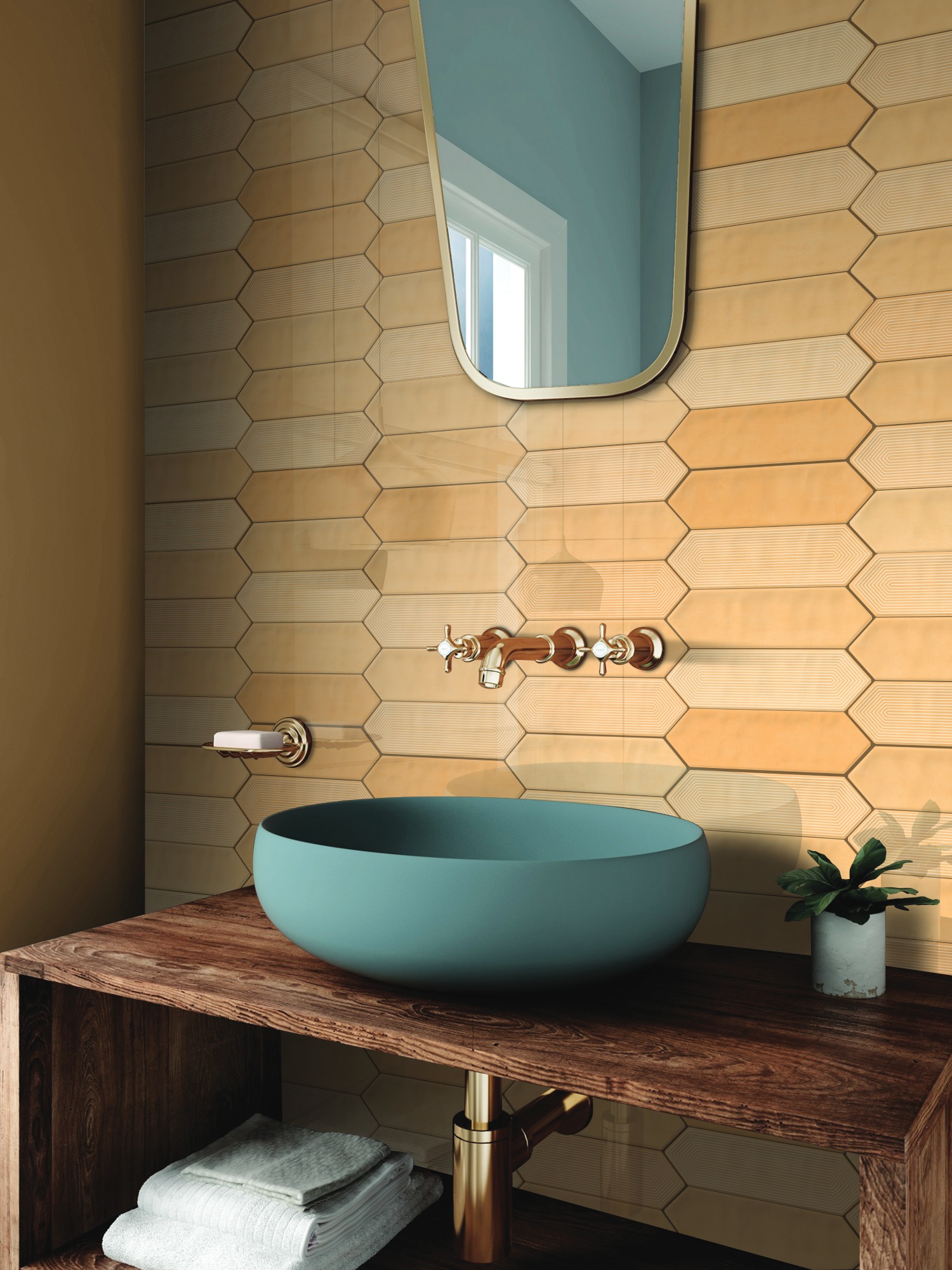 Warm and grounded, Picket Malt introduces an inviting caramel tone with a soft sheen. Its unique shape adds rhythm and visual flow, perfect for earthy design themes and cozy, contemporary aesthetics.