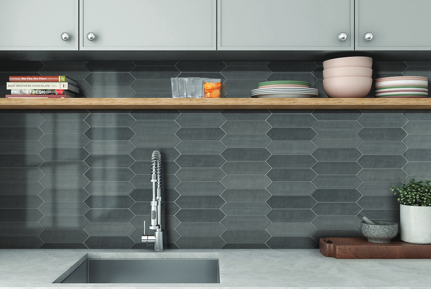 Mysterious and modern, Picket Shadow’s deep grey tone adds dimension and drama. Its geometric style pairs beautifully with both light and dark palettes, offering a refined backdrop for striking visual contrast.